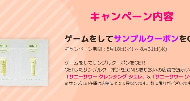 店頭サンプルクーポン 全プレ!イグニス洗顔無料サンプルプレゼント 2025年8月14日 cosme 化粧品の無料サンプルを試したい人へ イグニス化粧品キャンペーンページで夏肌トラブルを洗い流す洗顔無料サンプルがもらえるサンプリングを実施中! 全員プレゼントでもらえます。 店頭で公式サンプルクーポン画面を見せ …